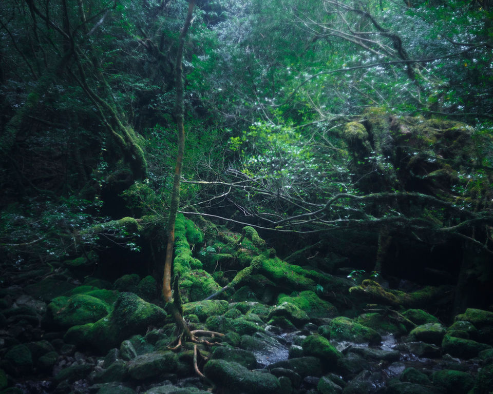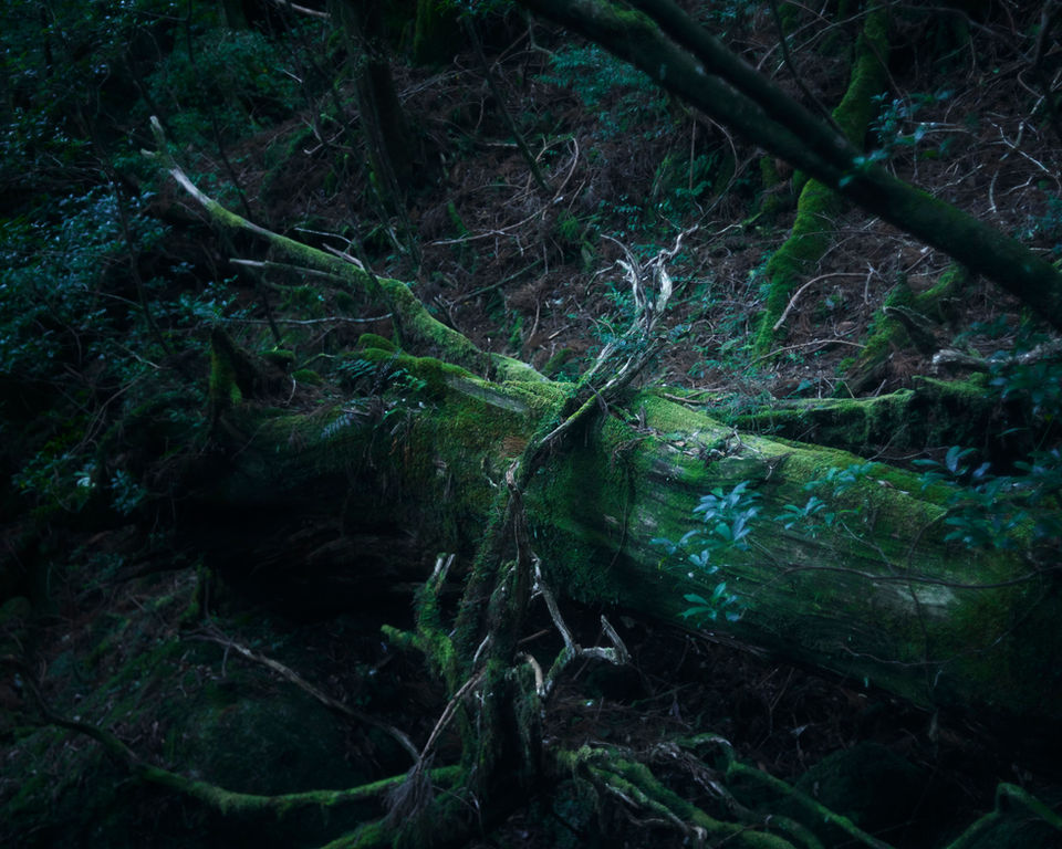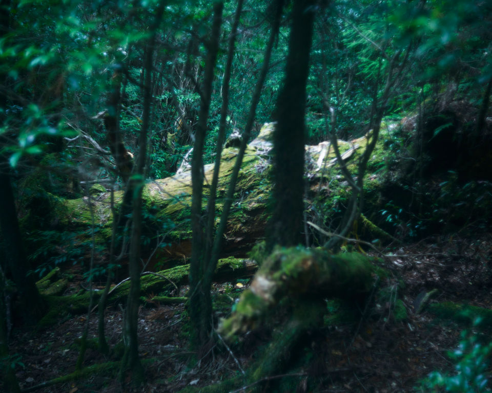 屋久島の森を歩き、静けさをまとった倒木を眺めていると、私の内にある激しい感情が行き場をなくして消えていくようでした。わき起こる怒りや留まり続ける悲しみといった感情は人の短い寿命からくる気がしてなりません。森の中には数千年前に生きた命があり、また数千年後まで生きる命が同時に存在しています。それらの倒木はときに赤ん坊を抱く祖父母のようにも見えてきます。悠久の中に立っていると、人もまた同じように生死を繰り返してきたのではないかと思えます。大切な命を次世代につなげるとは使い古された表現かもしれません。しかし、この森ではそれがシンプルな答えです。誰もが悠久の狭間に一瞬だけ生きているとするなら、個の想いを繋ぐことこそ生きる意味になり得るのかもしれません。