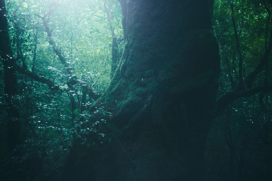 空から降ってきた雨は山肌や谷を沿って海に流れ落ちてゆきます。ただそれだけのことで、その間(あいだ)にはたくさんの命が生まれます。例外なく、人間もそこにある多くの命の恩恵を受けて生きてこれたのですから、間に生きる存在の一つに数えられるでしょう。とりわけ私の目をひいたのは、森の中でひっそりと生き続ける巨樹でした。通称「屋久杉」と呼ばれるその樹は、樹齢1000年以上の杉を指します。本州の杉の寿命は五百年ですから、少なくとも倍以上は生きていることになります。中には樹齢三千年を超える杉もあります。森では巨木の残骸も至るところに転がっていて、いつからそこにあるのか正確には誰にもわかりません。